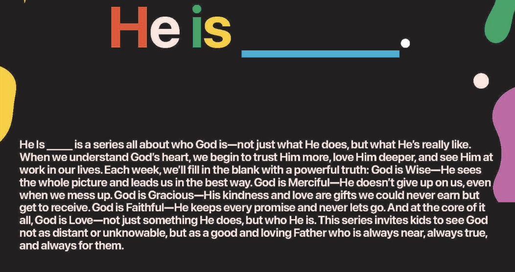 Kids will GROW to know God's love by having fun, building relationships with each other, and learning Bible stories.